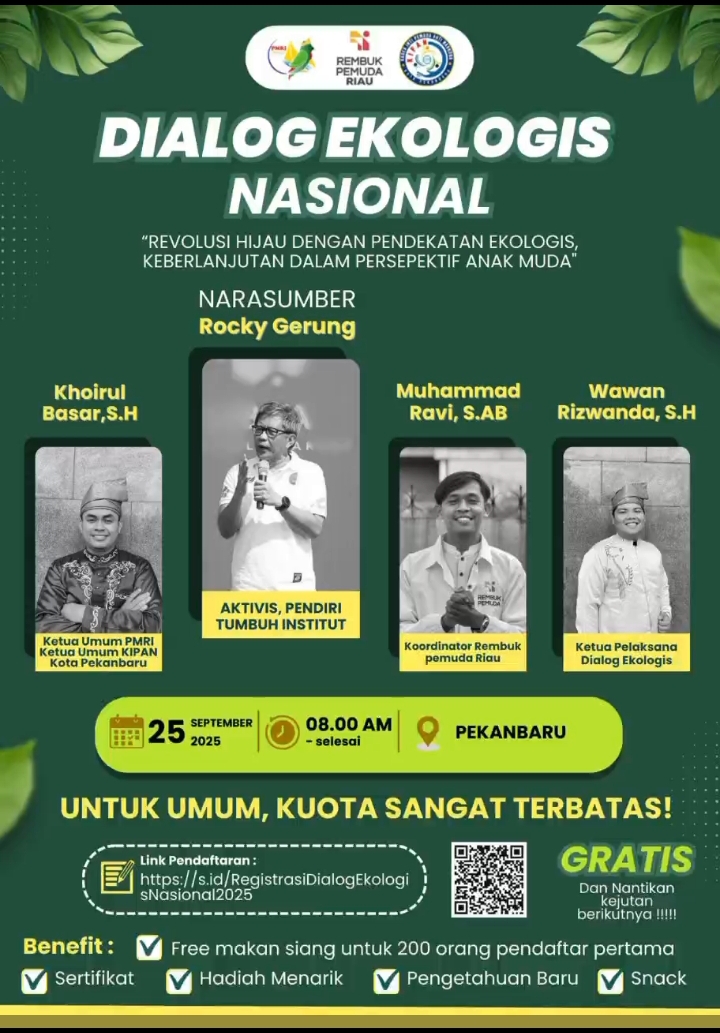 Agenda ini rencananya berlangsung pada 25 September 2025 di Pekanbaru, mulai pukul 08.00 WIB hingga selesai. Dialog ini digadang-gadang bakal menjadi forum kritis sekaligus inspiratif, yang memadukan isu lingkungan hidup dengan semangat anti-narkoba di kalangan generasi muda.