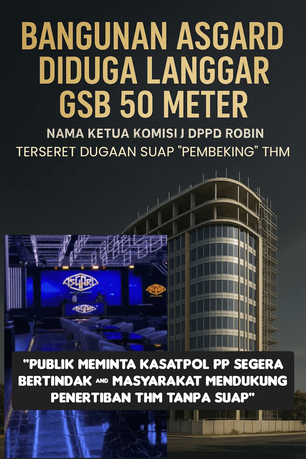 📌 Dalam konteks ini, publik menaruh harapan besar kepada Walikota Pekanbaru bersama Kasatpol PP untuk segera mengeksekusi bangunan Asgard dan Ketua DPRD Kota Pekanbaru untuk segera memberikan atensi penuh, menindaklanjuti informasi ini, serta memperketat kedisiplinan para anggota dewan yang terhormat.