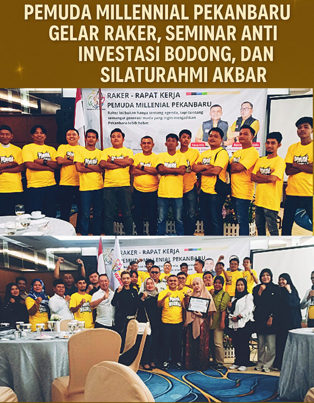 Agenda besar ini akan menghadirkan tiga rangkaian utama. Pertama, Rapat Kerja Pemuda Millennial Pekanbaru sebagai langkah strategis menyusun program kerja organisasi ke depan. Kedua, Seminar Bahaya Maraknya Investasi Bodong, Pinjaman Online (Pinjol), dan Judi Online (Judol) yang kian meresahkan masyarakat. Forum ini diyakini akan memberi pencerahan sekaligus edukasi bagi generasi muda agar lebih cerdas dalam menghadapi jebakan digital.