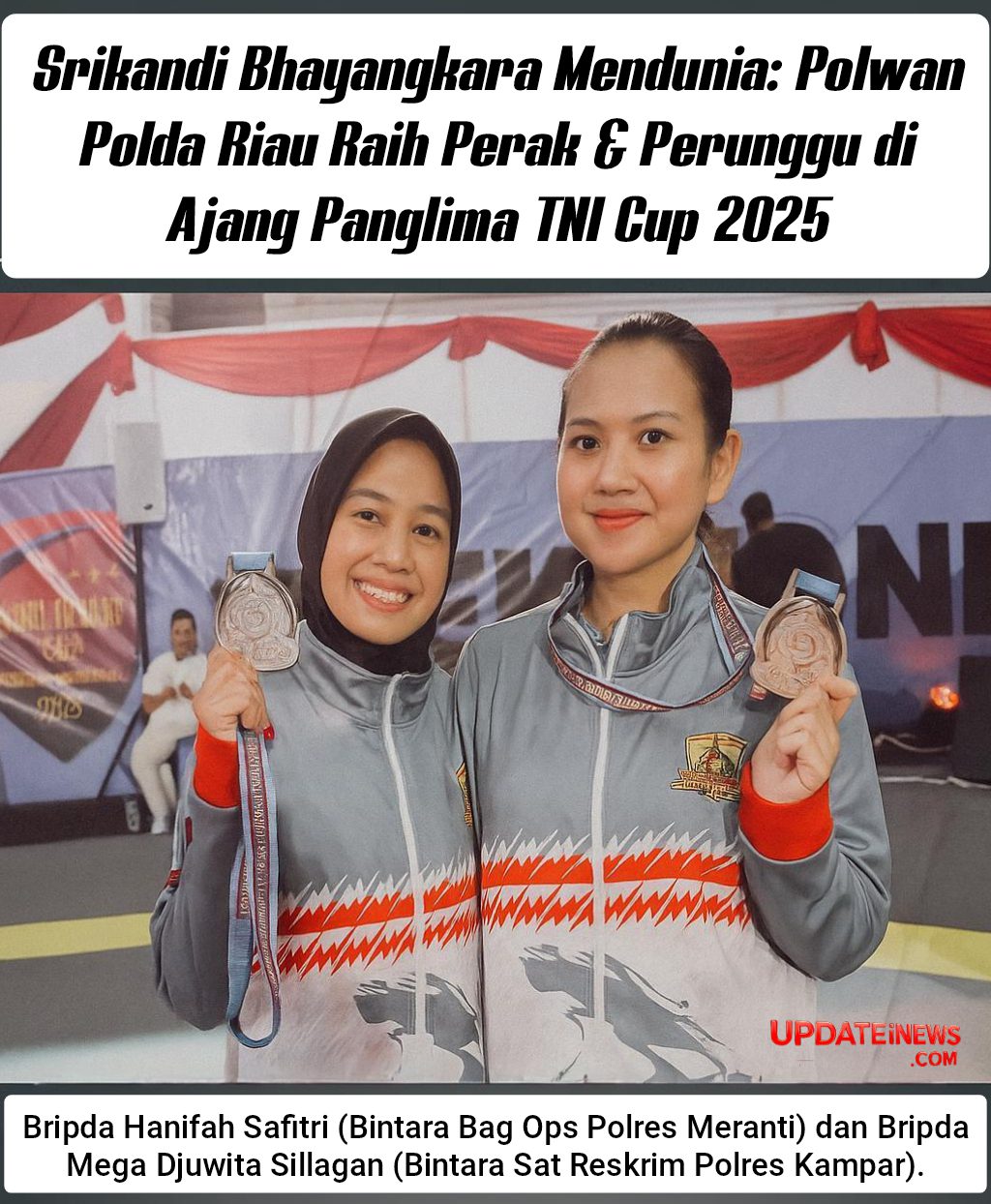 UPDATEINEWS|PEKANBARU,(29/09/25) – Dua srikandi Bhayangkara dari Polda Riau sukses mengharumkan nama daerah di kancah internasional. Pada ajang Series Open International Taekwondo Championship 2025 Panglima TNI yang digelar di GOR Ahmad Yani, Cilangkap, Jakarta Timur, 26–28 September 2025, Bripda Hanifah Safitri (Bintara Bag Ops Polres Meranti) berhasil meraih medali perak di kelas under 53 kg putri, sementara rekannya Bripda Mega Djuwita Sillagan (Bintara Sat Reskrim Polres Kampar) sukses membawa pulang medali perunggu di kelas under 73 kg putri.
